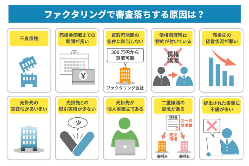 ファクタリング 2025/12/15 ファクタリングは小口でも可能? 少額利用がおすすめなケースやファクタリング会社の選び方をご紹介 ファクタリング 2025/12/11 ファクタリングの手数料に消費税はかかるの? 非課税となる理由を分かりやすく解説 ファクタリング 2025/12/11 ファクタリングで審査落ちする理由は? 審査基準や審査に落ちないためのポイントを解説