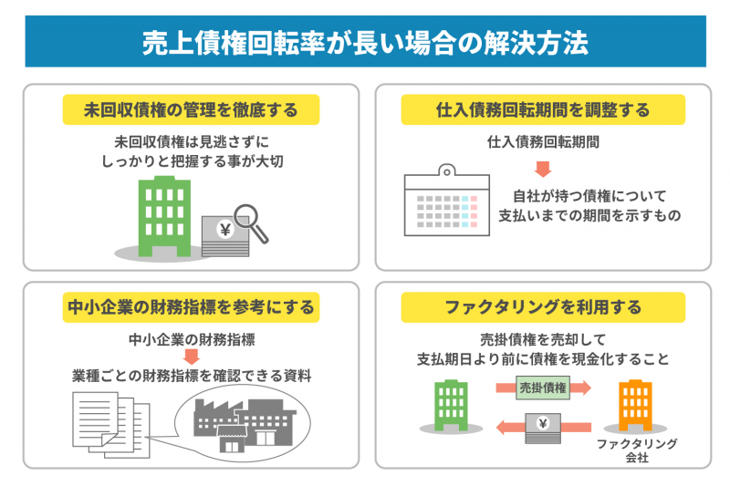 では自社の売上債権回転率が長い場合は、どのように解決すればいいのでしょうか。ここでは解決方法の代表例を4つ紹介します。ぜひ、参考にしてください。