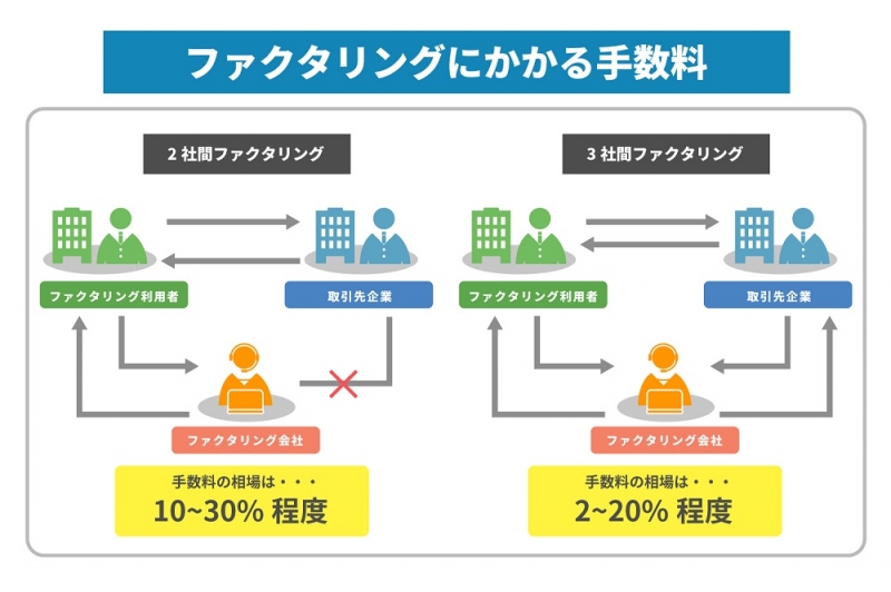 一例を挙げるなら、2社間ファクタリングの場合は10~30%程度、3社間ファクタリングでは2~20%程度といわれています。
