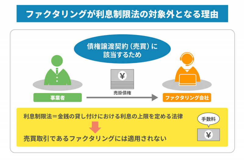 これまで解説した通り、ファクタリングは売掛債権の売買契約であるため、原則として金銭の貸し付けには該当せず、利息制限法は適用されません。