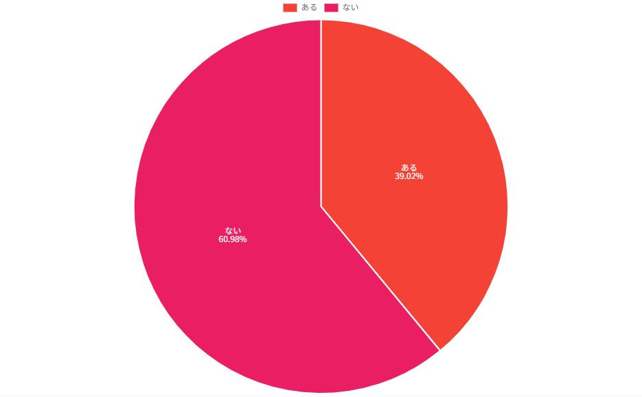 | ● ある 39.02%(16人) ● ない 60.98%(25人) |