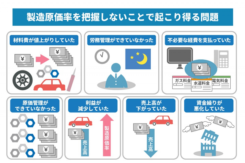 ここまでお伝えしてきた通り、製造原価率を把握していないということは、製造原価に関わる費用の多くを管理できていない可能性が高いです。製造業は他業種と比べても管理する原価が多いため、製品別に把握する必要があります。また、原材料の管理ができていなければ、必要以上に材料を仕入れるなど、過剰在庫が発生し、資金繰りを圧迫しているケースもあるでしょう。