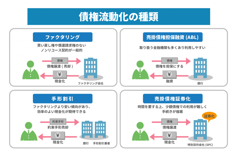 債権流動化の方法には、主に以下の4つがあります。