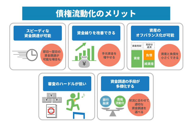 債権流動化には、主に次の5つのメリットがあります。